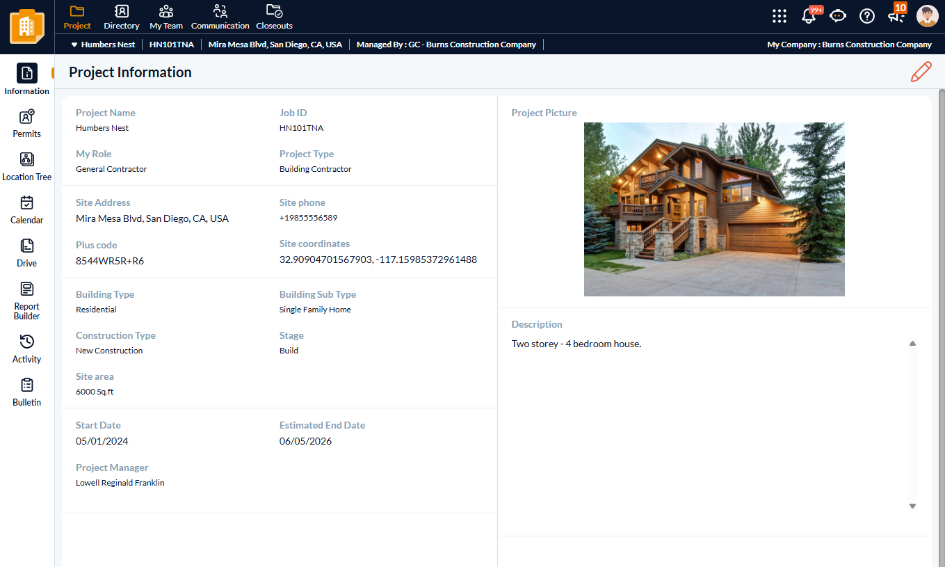 - Information - General details of the project. The general contractor can edit these at any time. See Edit Project details for more details.