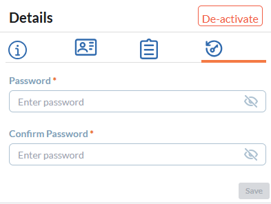 The Password tab allows you to reset an employee’s password on their behalf. Use this option if the employee has forgotten their password or is unable to access their account. See Manage Employee Password for guidance.