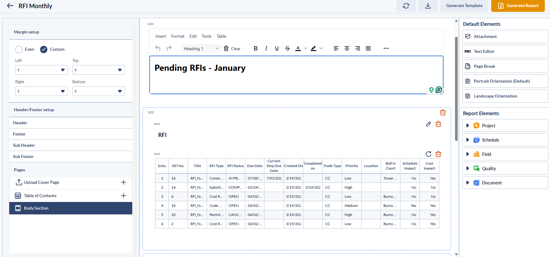 Note: You can also customize the report or template as needed when generating a new report. See to Edit Report or Template for more information.