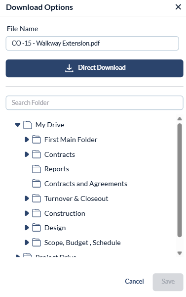 - Project Drive- Share with the construction team members from any stakeholder organization: