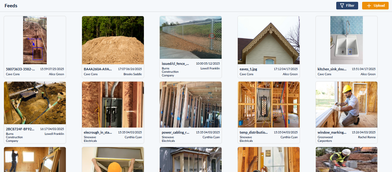 The Feeds module features custom tags to organize images and videos for faster search, filtering, and easy access. Tags can be added to one or more media items to classify them by task, trade, location, or activity. You can