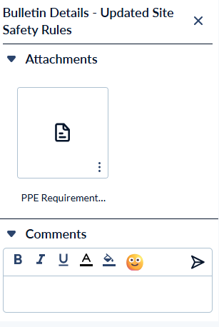 • Click the serial number to view attachments added to the bulletin and comments in the right pane.